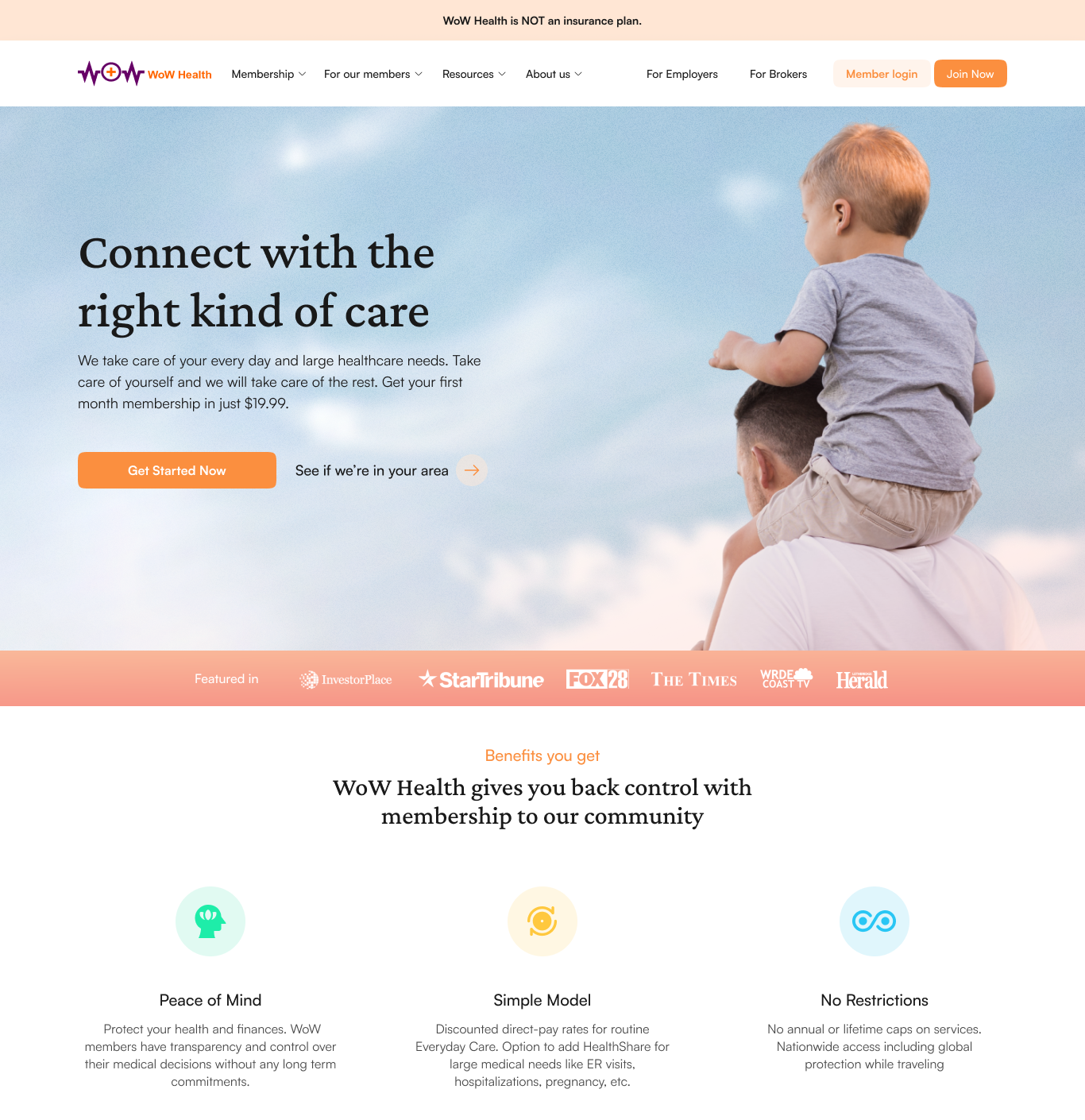 WoW Health is a U.S.-based healthcare platform that offers a direct-pay alternative to traditional insurance, empowering users with transparent pricing, upfront costs, and access to a broad network of healthcare providers. It removes the complexity of medical billing and puts healthcare back in the hands of consumers—whether they’re uninsured, self-employed, or seeking supplemental coverage.